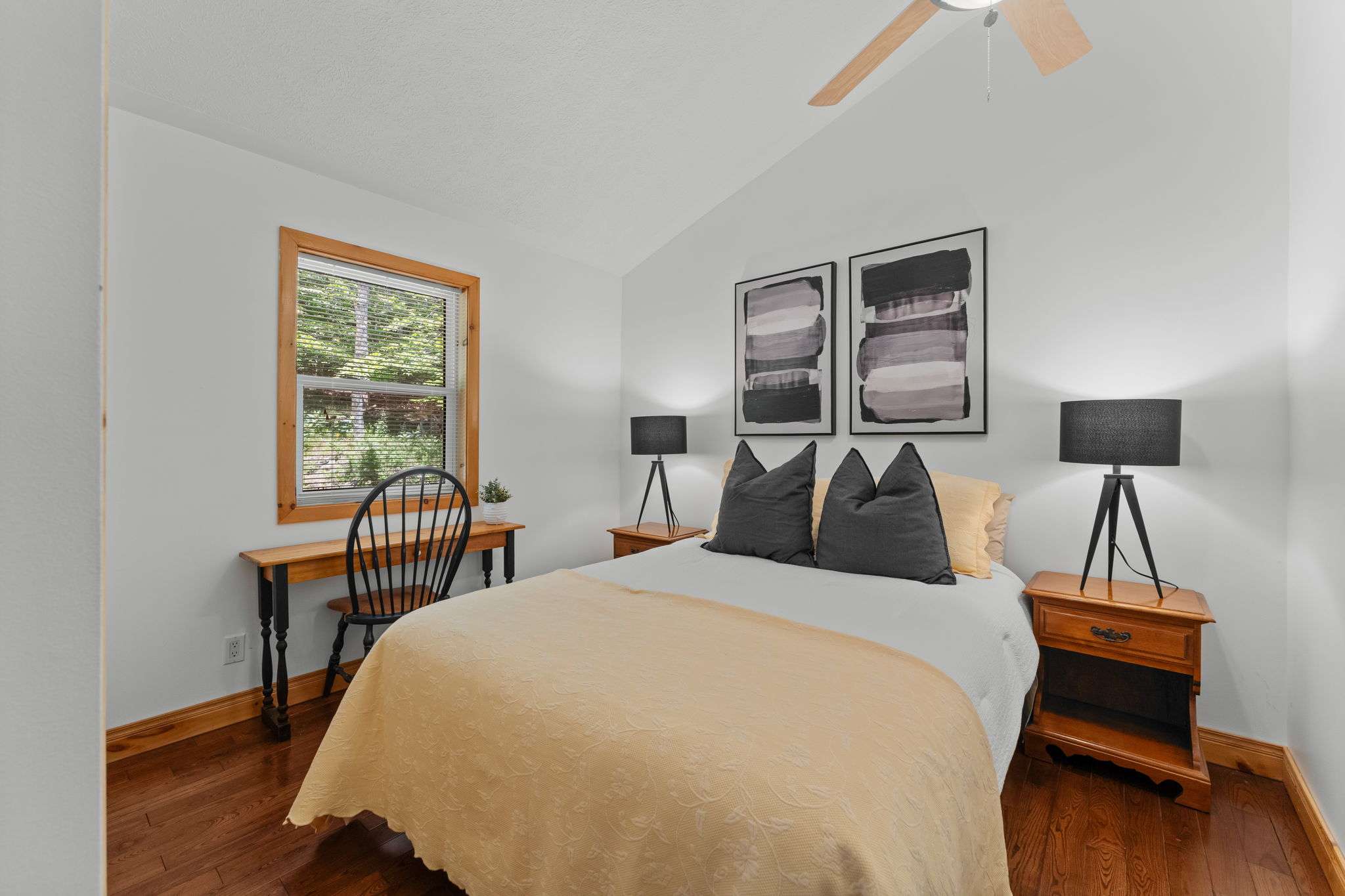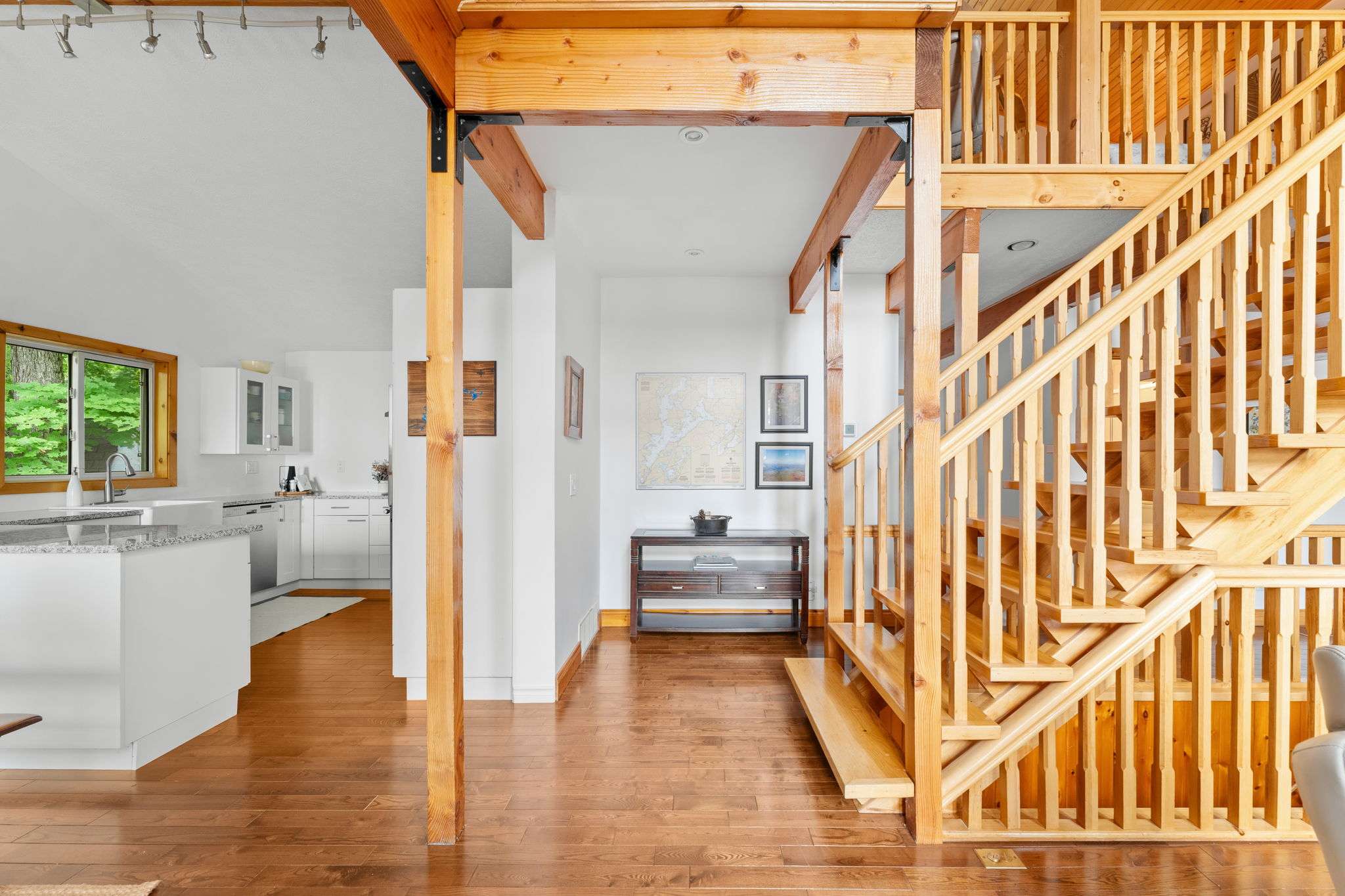 Tucked into a peaceful, tree-lined setting with stunning southern views over Lake of Bays, this charming 4-bedroom, 3-bath Viceroy-style home or cottage offers over 2,100 sq.ft. of thoughtfully updated living space. Inside, soaring ceilings and wall-to-wall windows invite the outdoors in, while a reimagined kitchen, warm wood accents, and a striking stone fireplace create a welcoming atmosphere year-round. The main level includes two comfortable bedrooms, a full bath, and a spacious laundry room, while the upper loft-style suite offers lake views, a walk-in closet, a private ensuite, and access to a brand new balcony deck the perfect spot for morning coffee. Downstairs, the walkout level features a granite-tiled rec room with a woodstove perfect for cozy evenings after a day on the trails around Lake of Bays or the lake. This home is as functional as it is beautiful, with a number of recent upgrades that add peace of mind: a new septic pump and line, a new well pump, air conditioning, and the finalized purchase of the Shore Road Allowance and survey. Outside, enjoy a brand-new crib dock and floating dock that enhance your private sand waterfront experience just across the cottage road. A rebuilt triple garage offers abundant space for vehicles, recreational gear, or a workshop setup. Whether you’re searching for a weekend escape or a fulltime lakeside lifestyle, this property is an opportunity on one of Muskoka’s most desirable lakes. Book your private tour today and start your next chapter at the lake.