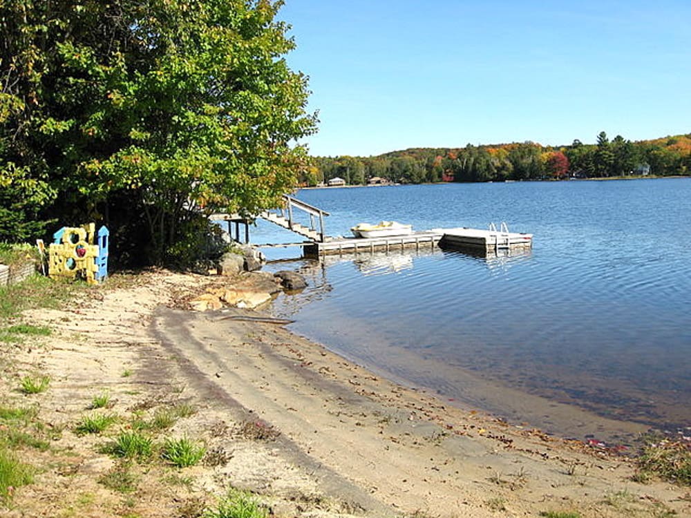 The property features a gentle slope from the cottage and driveway down to the hard-packed sand beach with a shallow, family-friendly entrance to the water. A large dock with deeper water provides easy access for swimming, boating, and all your lakefront adventures. The waterfront deck area is the perfect spot to unwind, sip your morning coffee, and take in the serene lake views.