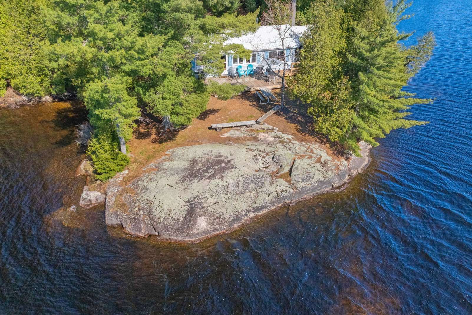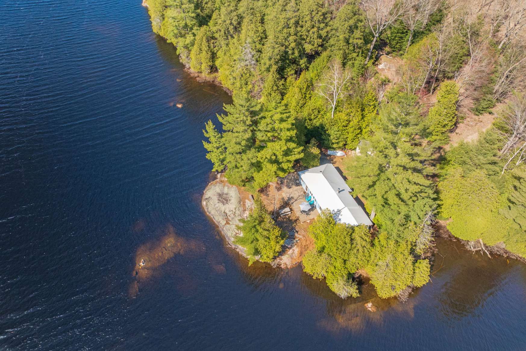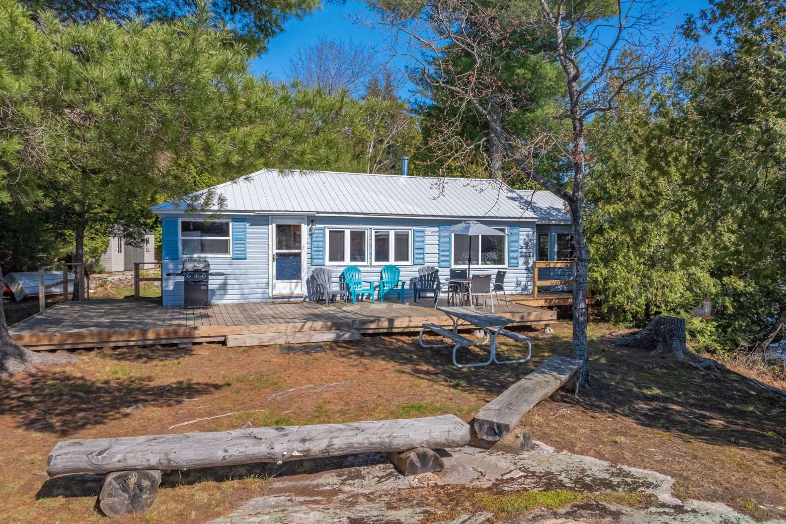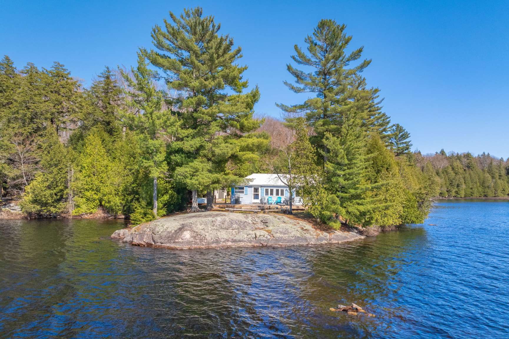 This waterfront cottage is the perfect spot for family and friends. Nestled in the woods at the end of the road on an acre of land, it provides great privacy and a definite feeling of solitude. Fantastic views down the lake with perfect western exposure. This cottage has been successfully rented out for a few weeks every summer and the owners have always taken pride in keeping the cottage quaint yet very well kept. The cottage is bright, clean and compact with fantastic views of the lake from the kitchen, dining and living area. The two bedrooms face the back and look out to the forest making for a great night’s sleep. The Muskoka Room off the end of the cottage provides a beautiful area to gather and is also perfect for overflow guests utilizing it as an additional sleeping area. The most peaceful spot to take in the picturesque lake views and the area’s natural beauty is perched on the beautiful flat bedrock area along the waterfront. For the more adventurous albeit careful, one can dive off the rock at this point but the safer entrance to the lake is from a small sandy beach area to the right! Bear Lake is very private and peaceful and beckons to be explored. Great fishing with Pickerel, Northern Pike and Large Mouth Bass in abundance. Facing west, you will have the pleasure of night after night of stunning sunsets! It’s time to sit back, relax and enjoy! Vacant waterfront lot next door is also available for sale, MLS #X12144924