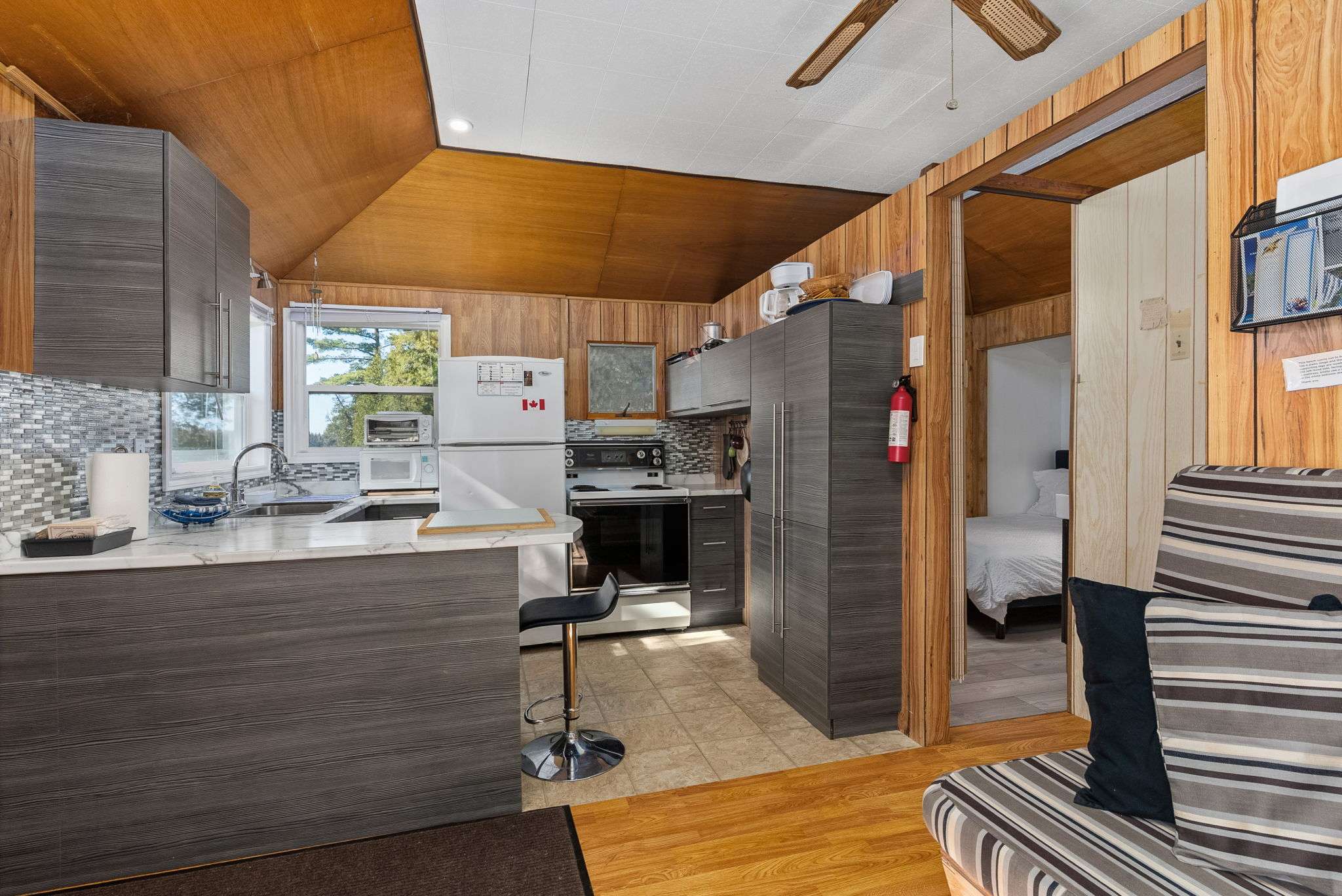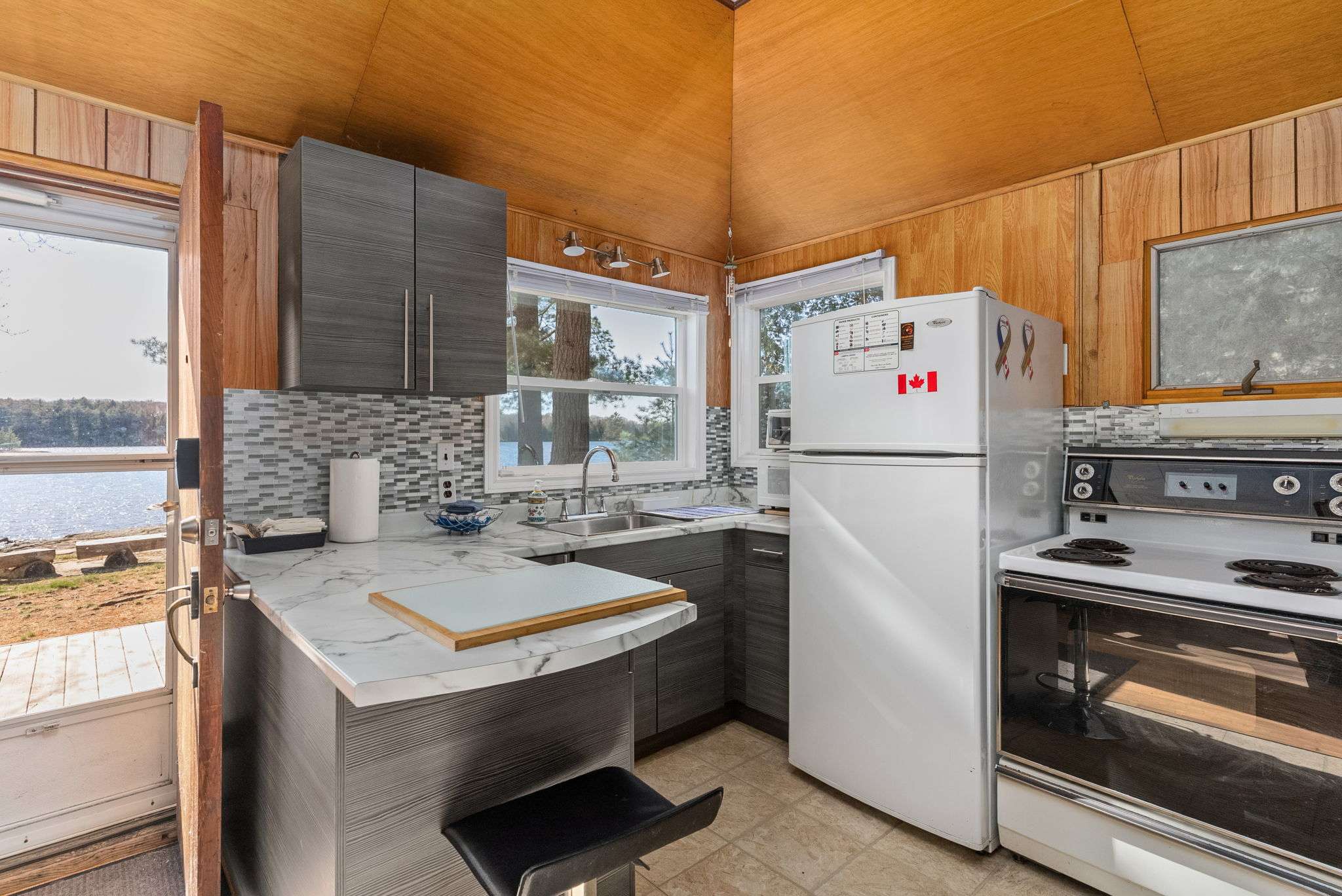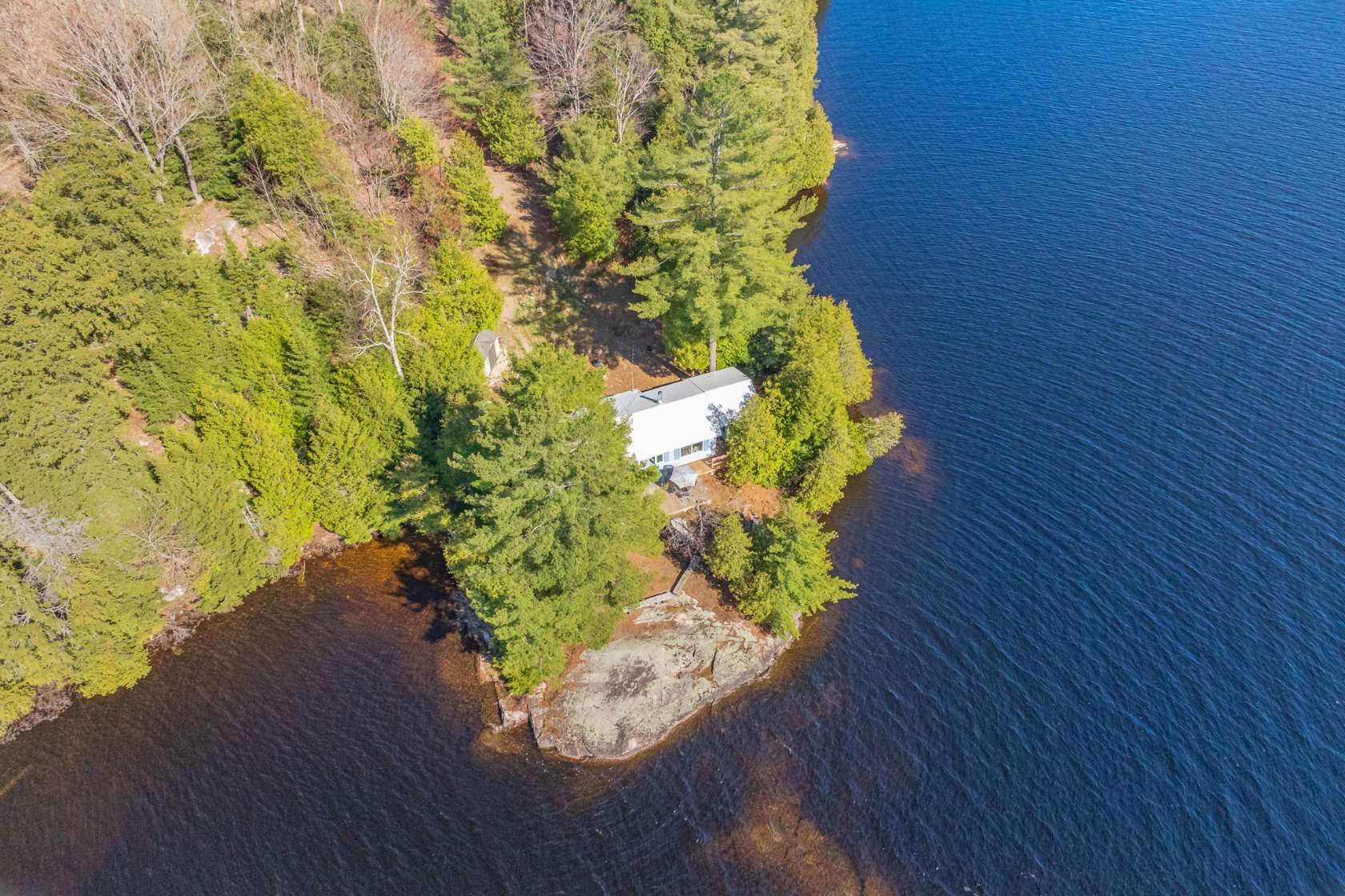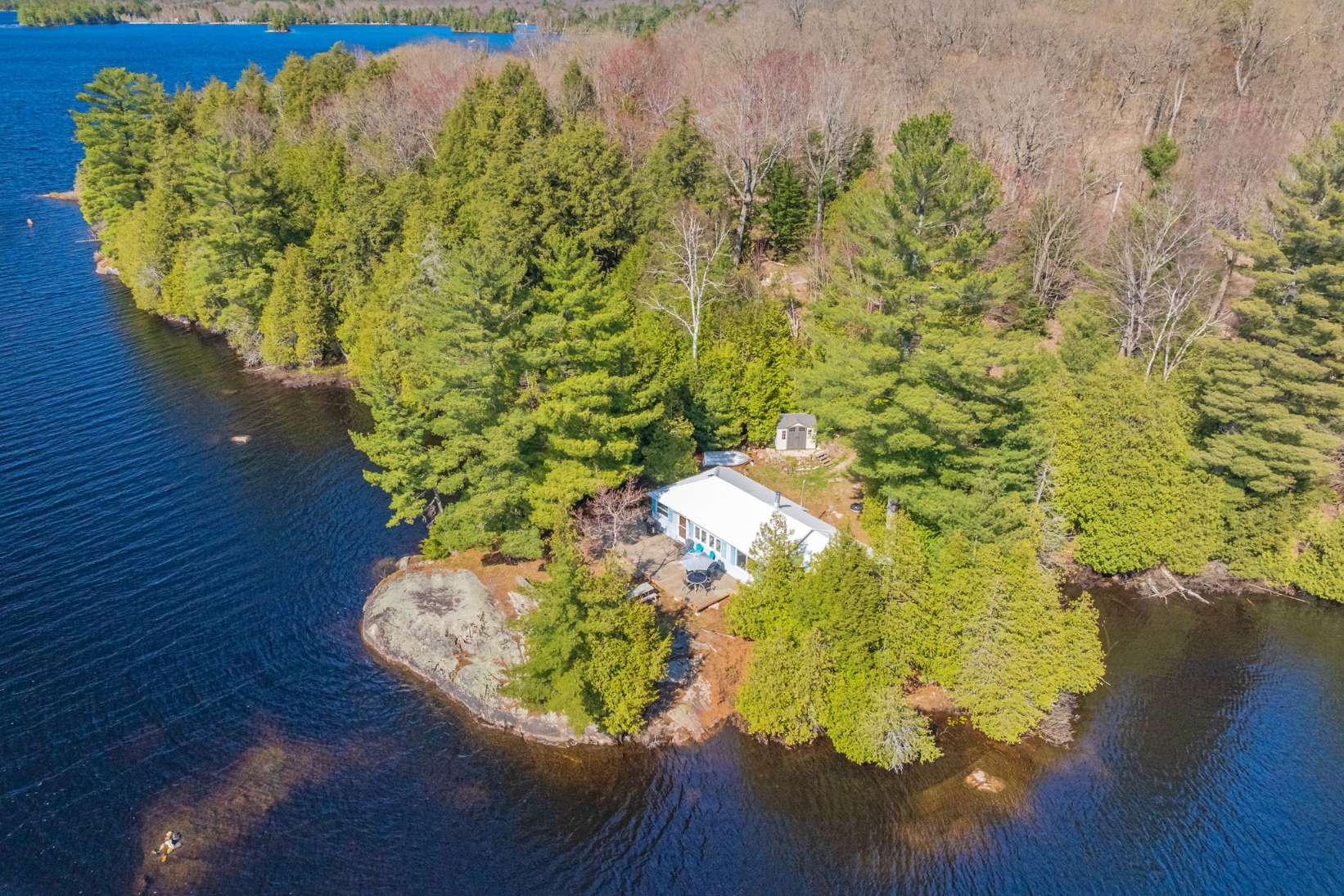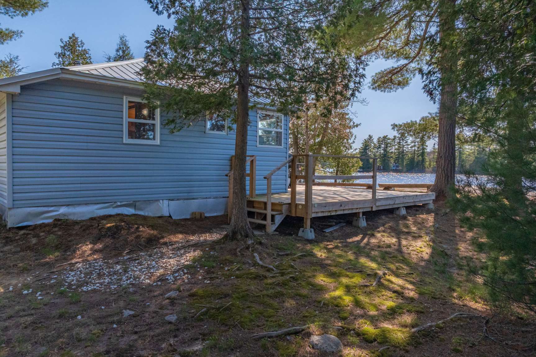 This waterfront cottage is the perfect spot for family and friends. Nestled in the woods at the end of the road on an acre of land, it provides great privacy and a definite feeling of solitude. Fantastic views down the lake with perfect western exposure. This cottage has been successfully rented out for a few weeks every summer and the owners have always taken pride in keeping the cottage quaint yet very well kept. The cottage is bright, clean and compact with fantastic views of the lake from the kitchen, dining and living area. The two bedrooms face the back and look out to the forest making for a great night’s sleep. The Muskoka Room off the end of the cottage provides a beautiful area to gather and is also perfect for overflow guests utilizing it as an additional sleeping area. The most peaceful spot to take in the picturesque lake views and the area’s natural beauty is perched on the beautiful flat bedrock area along the waterfront. For the more adventurous albeit careful, one can dive off the rock at this point but the safer entrance to the lake is from a small sandy beach area to the right! Bear Lake is very private and peaceful and beckons to be explored. Great fishing with Pickerel, Northern Pike and Large Mouth Bass in abundance. Facing west, you will have the pleasure of night after night of stunning sunsets! It’s time to sit back, relax and enjoy! Vacant waterfront lot next door is also available for sale, MLS #X12144924